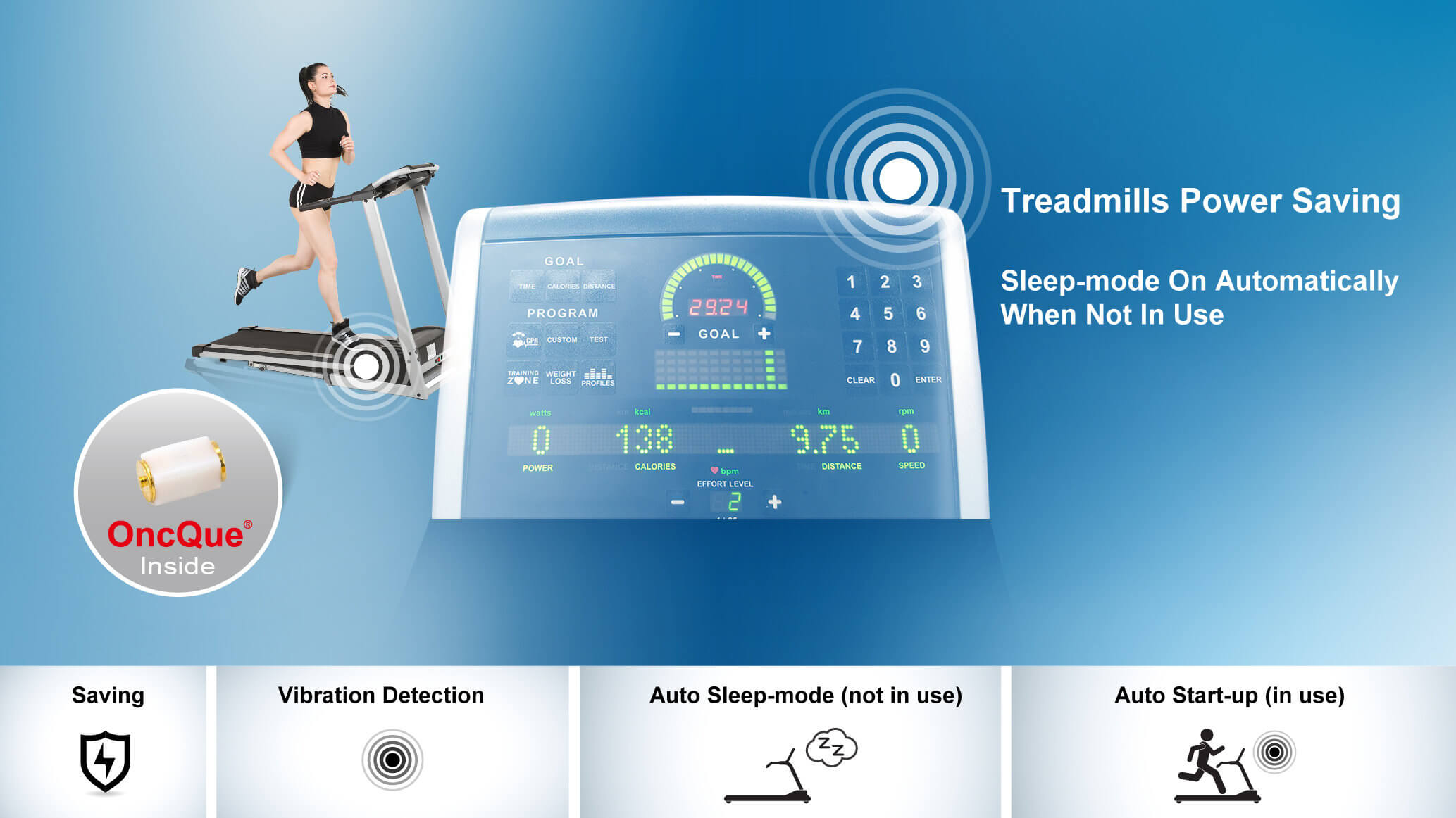 When users step on the treadmill, the slight vibration will trigger the vibration sensor installed on the treadmill and make the treadmill resumes to work mode by the change of Hi/Low signal.